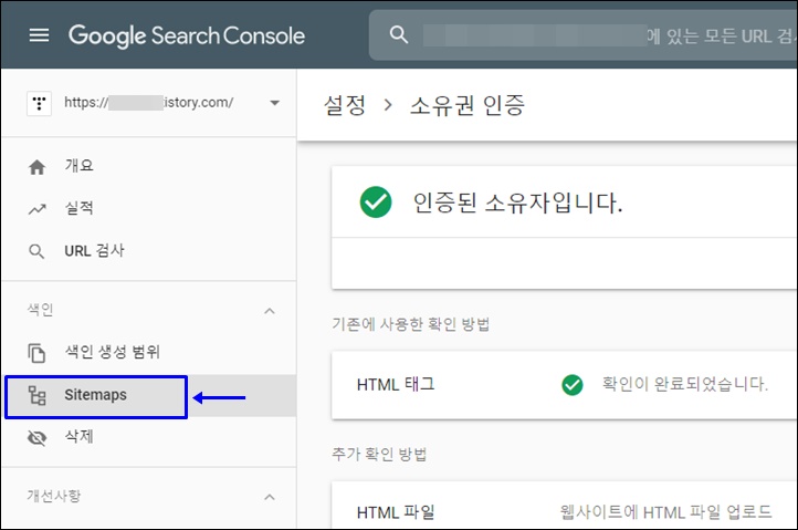 이 과정이 끝나야 구글 서치콘솔에 내 티스토리 등록이 완료된 것입니다. 조금 길어보이지만 한번 익히시면 다음부턴 쉽게 하실 수 있을거에요.