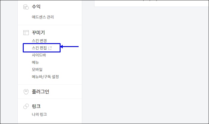 티스토리 또는 웹사이트 관리자모드에서 '스킨편집 > html 편집' 으로 이동합니다.