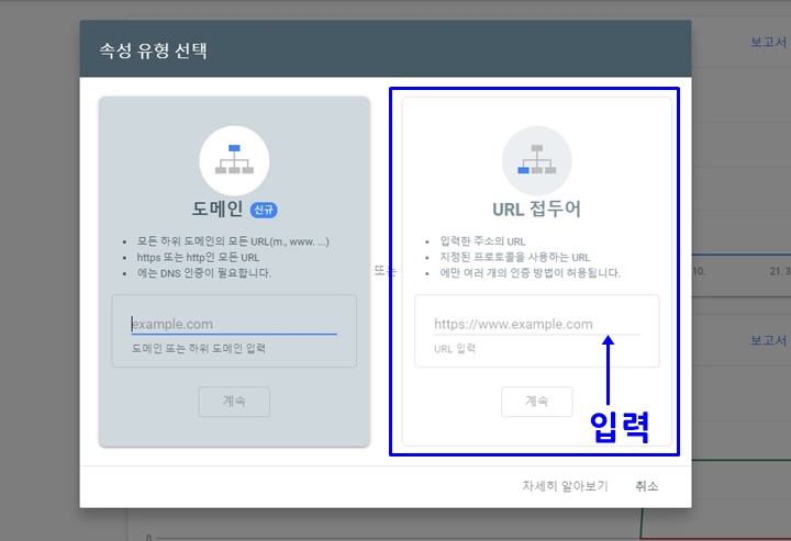 URL 접두어에서 자신의 웹사이트 주소를 입력합니다.