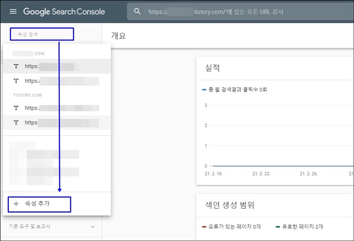 그리고 내가 등록할 티스토리나 웹사이트의 관리자모드로 접속해 놓으셔야 합니다. 구글 서치콘솔 도구에서 티스토리나 웹사이트로 이동하면서 설정할 것이 있기 때문입니다.