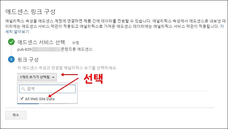 7. 오른쪽 화면에 애드센스 링크구성이라는 화면이 나타납니다.